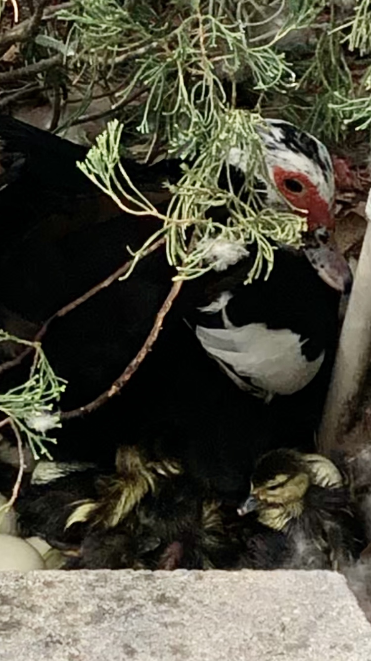 There was something was so precious and serene about the occasion. The sweet duck chirps and laughter from my neighbors was heaven. Naturally- the nest was the first place I ran to when I woke up this morning. Mom was still there with all of her little ones. Content and contemplating her next move. I could sit and watch this scene all day. Just sipping wine, playing on a little lap harp, and watching baby ducks.